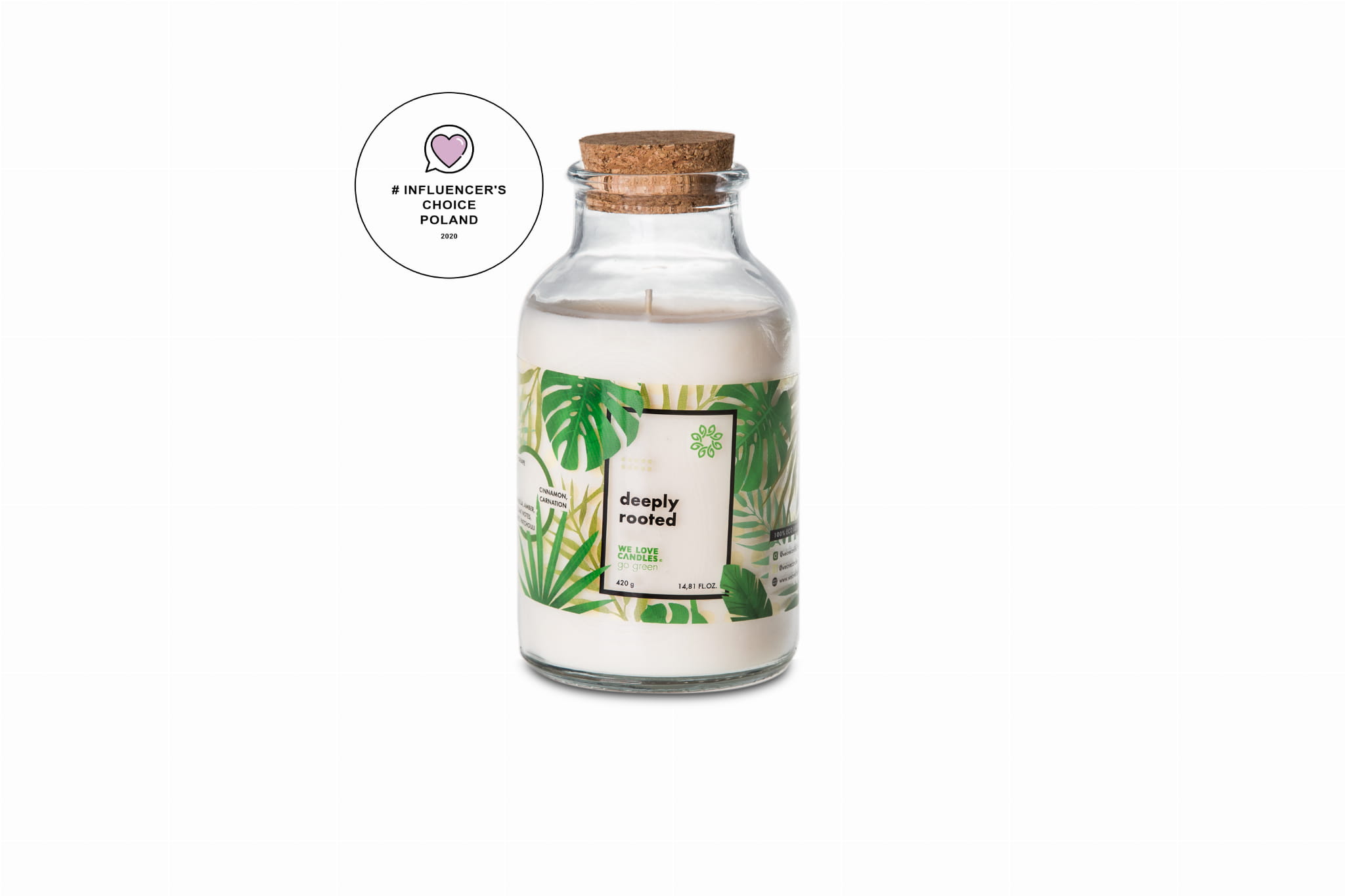 All the scented candles from the vegan Go Green collection will immerse you in the comfort of your own home in the soothing experiences you know from contact with nature. Our candles are made of 100% ecological soy wax. There are no artificial colors, petrochemical fragrances, or anything that can endanger the health of you, your loved ones, and friends on four legs. The safety of their use is guaranteed by a wick made of organic cotton. The glass in which we enclosed the beautiful fragrances from the Go Green collection comes from recycling, and the unusual shape of the bottle gives an intimate, pleasant light. The lid is a natural cork. The collection was created out of our love for the Earth and expresses the belief that good choices change the world. "Go Green" is power - the power of significant changes resulting from small decisions: veganism, no waste, recycling - it is more than just ideas. This is the manifesto of our time. Be the change you want to see in the world. Join us!