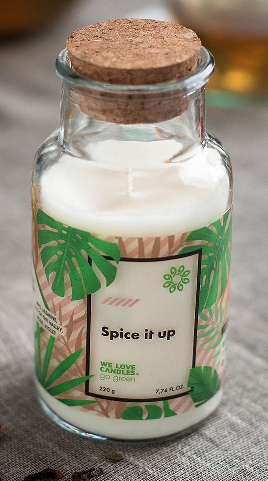 In the Spice it up fragrance from the Go Green collection, you will find notes of green tea, lemon, mandarin, and nutmeg. The fragrance's heart is flowers such as iris, jasmine, lily of the valley, rose, and violet. The fragrance is based on cedarwood, cashmere, moss, and musk. It's the perfect choice for all those who like intense sensations and want to give themselves a boost of energy without reaching for another dose of caffeine. The sensual, joyful fragrance will spoil the senses of all household members. Maybe you are looking for a gift idea for a loved one? Give him this candle and express all good wishes with it.